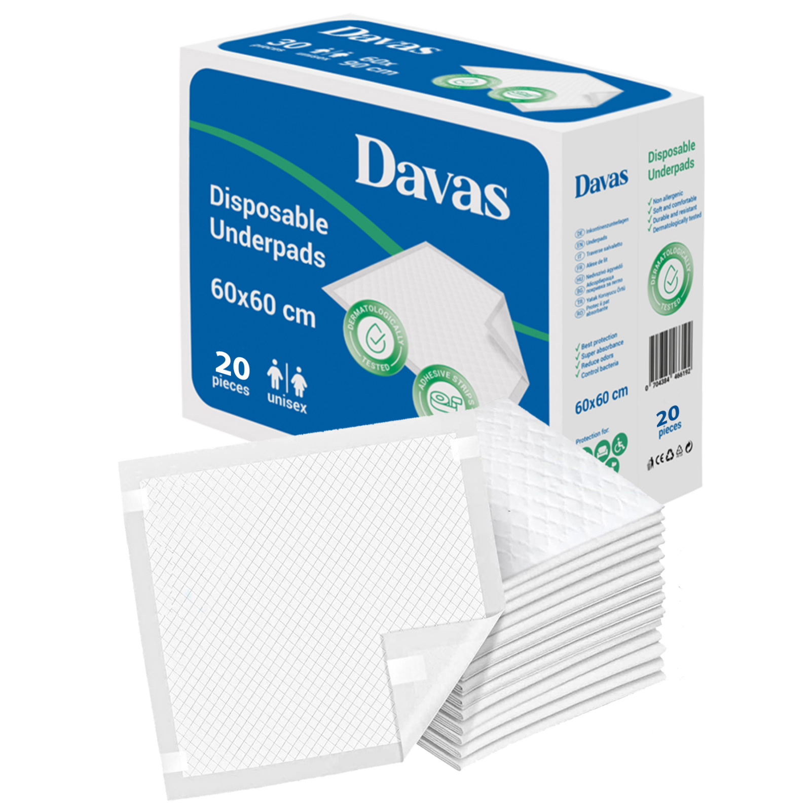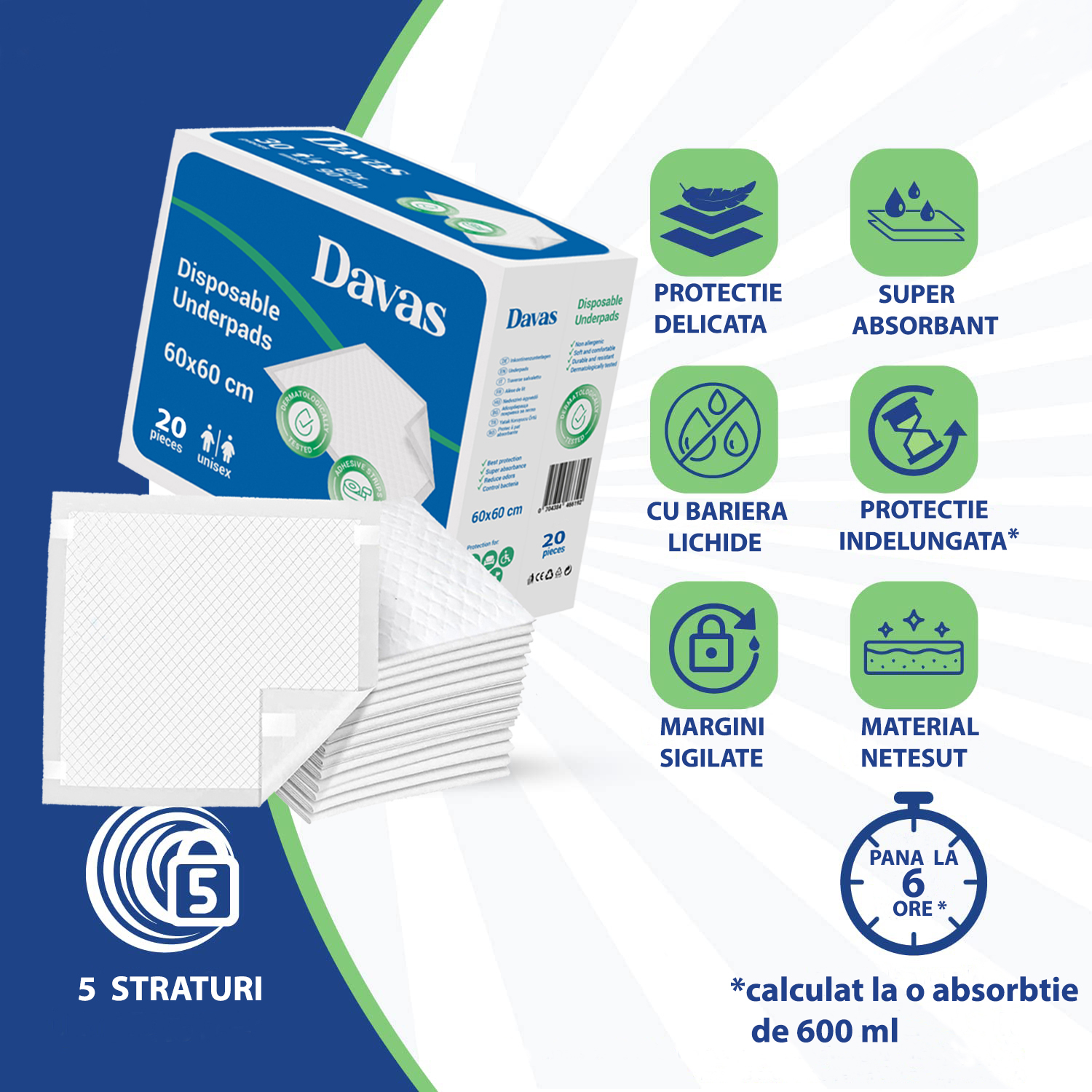 ALEZE PROTECTIE PAT DAVAS, ABSORBANTE, 60x60 CM, 20 BUC.