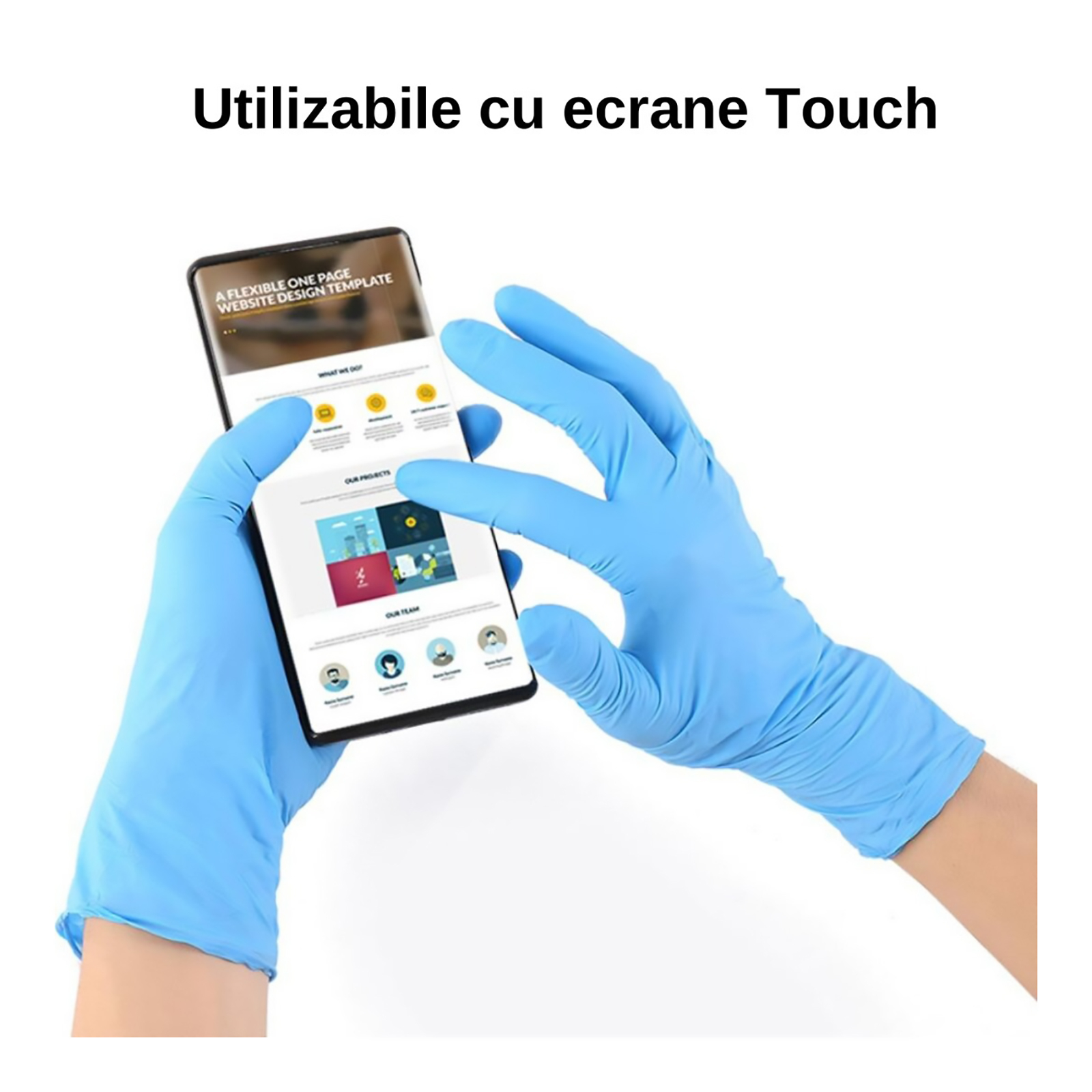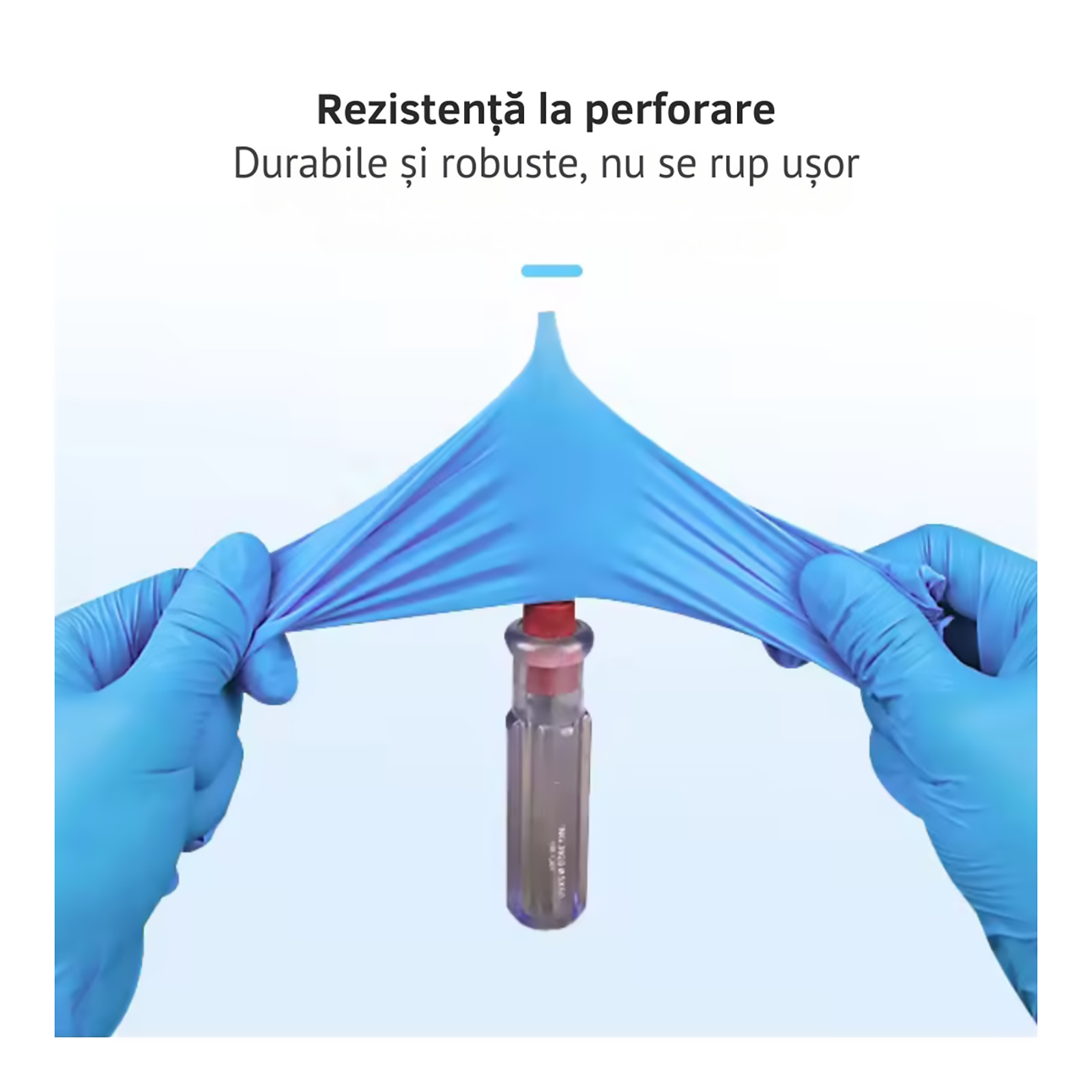 Mănuși medicale de examinare din nitril nepudrat, concepute pentru a oferi protecție în diverse medii medicale. Aceste mănuși sunt ambidextre, ceea ce înseamnă că pot fi folosite pe oricare mână.