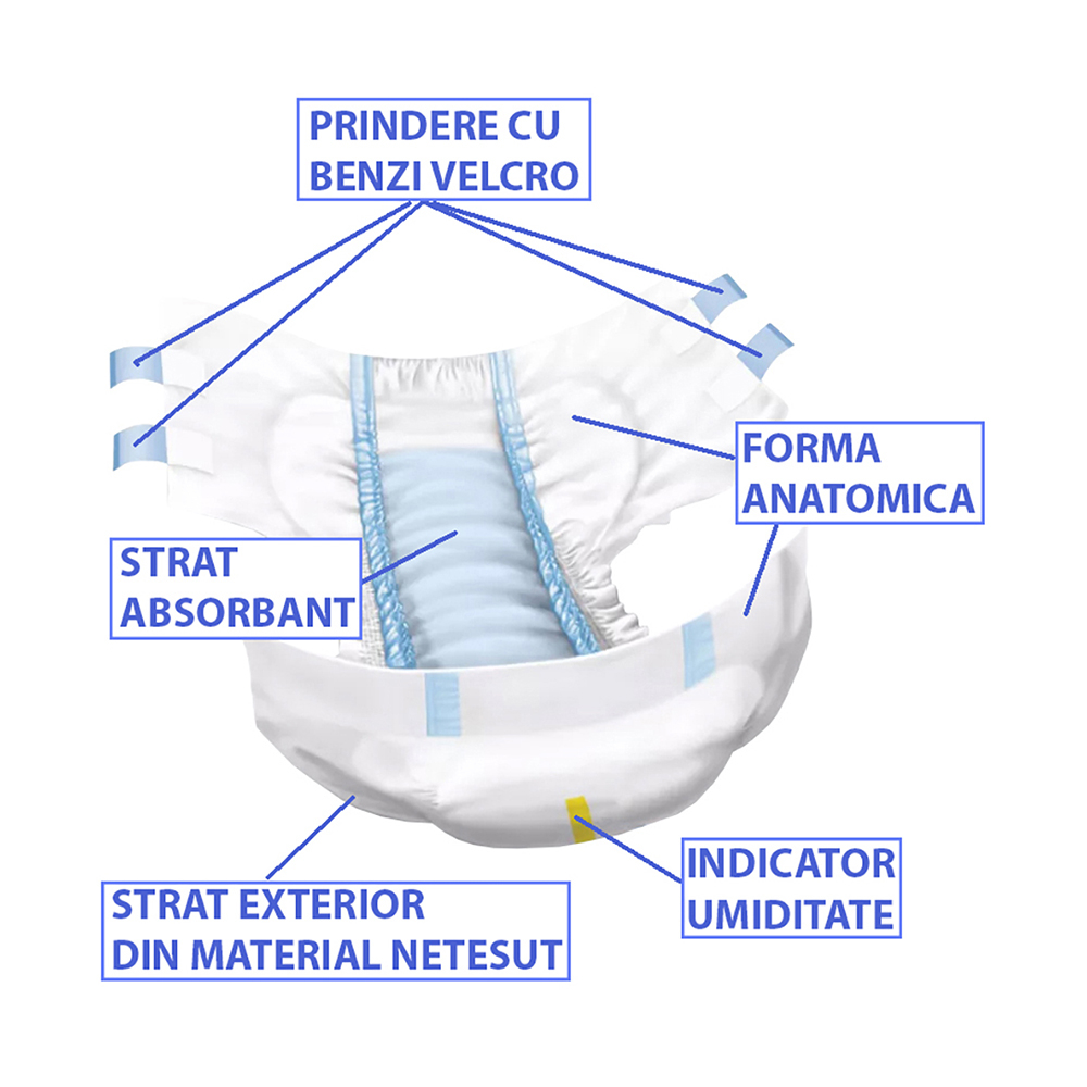 Avantaje: produse din gama Premium, certificate DAkkS UNICERT GERMANY (testate dermatologic, antialergic, nu produc iritatii), structura anatomica ce imbraca perfect, asigura protectie maxima si absorbtie maxima, sunt Unisex (dama, barbati)
