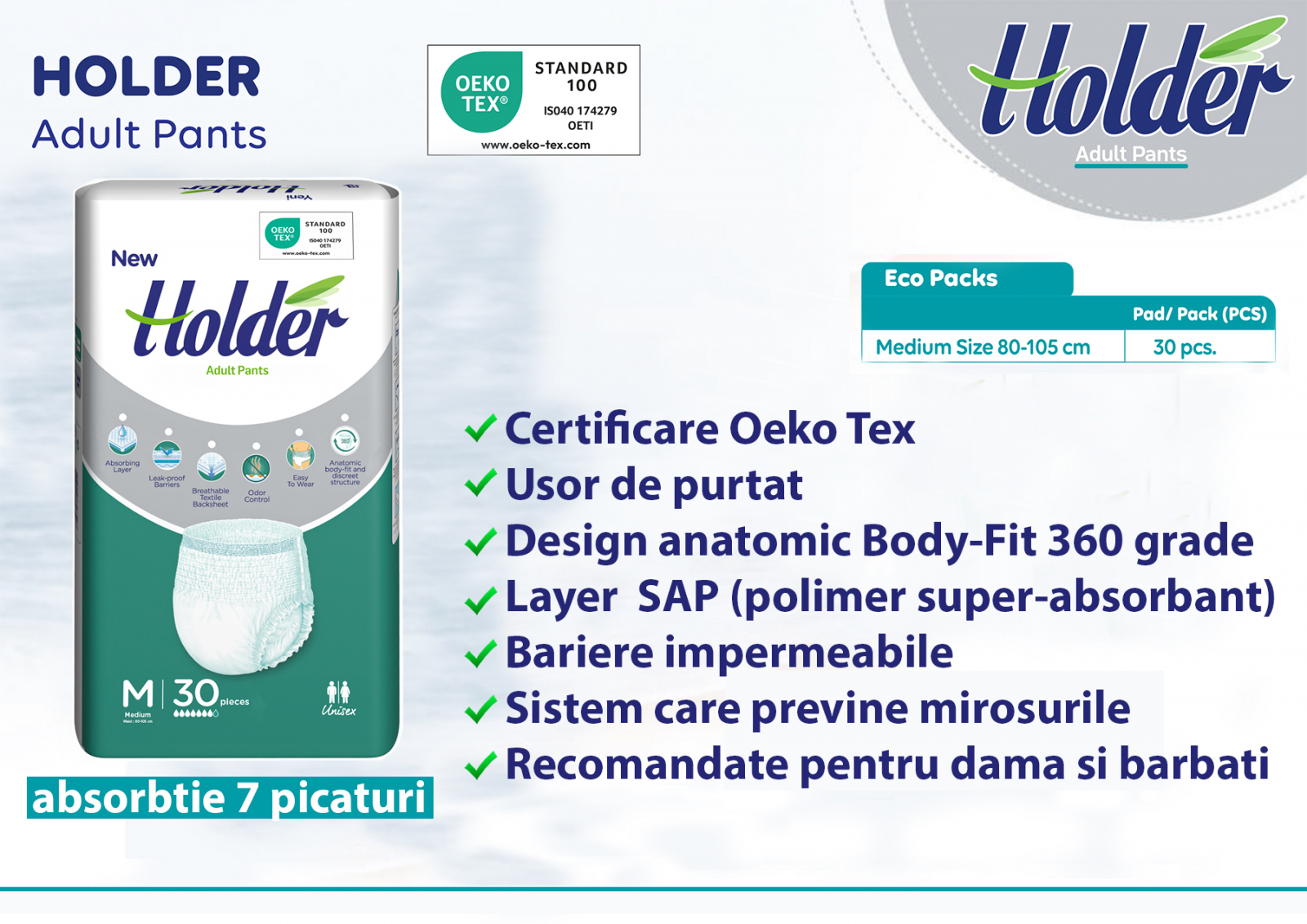 - Scutece adulti pentru incontinenta medie si grava, cu capacitate mare de absorbtie